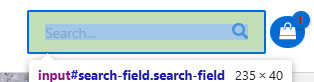 Search Box: La barra de búsqueda y el icono permanecen visibles y ocupando espacio, miden 201x40px de manera predeterminada