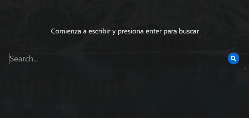 Full Screen Search: La barra de búsqueda permanece oculta, y aparece al hacer click en el icono de la lupa, en una capa translúcida que cubre el sitio web en su totalidad. Sólo ocupa el espacio del icono de búsqueda en el header.